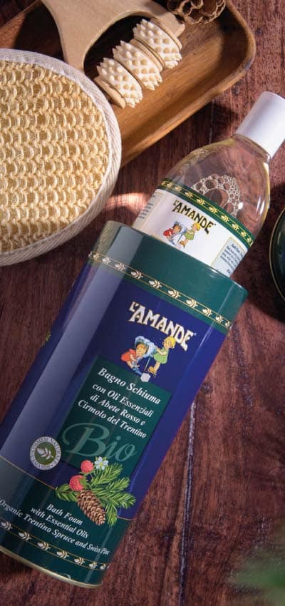 L’Amande ha selezionato gli oli essenziali biologici di abete rosso e cirmolo per il loro inconfondibile profumo fresco e balsamico che sa di baite d’alta quota, di legno e di resina. Ma che ci ricorda anche i muschi, i piccoli frutti rossi ed i funghi che troviamo e “respiriamo” nelle nostre passeggiate lungo i sentieri di montagna. Un vero e proprio trattamento antistress che aiuta a calmare gli stati di agitazione ed allietare lo spirito.