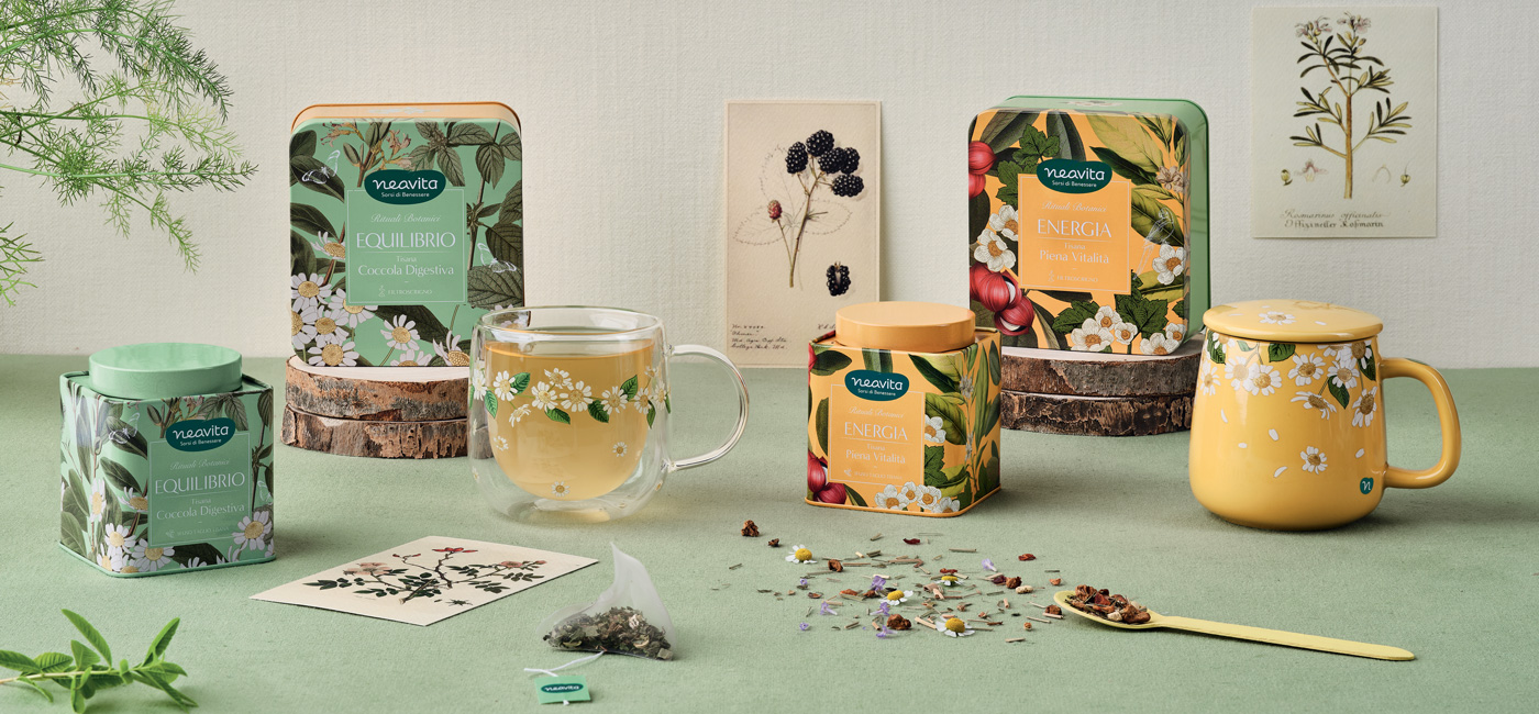 Una linea botanica che unisce il gusto e il calore della tisana alla sua funzionalità.